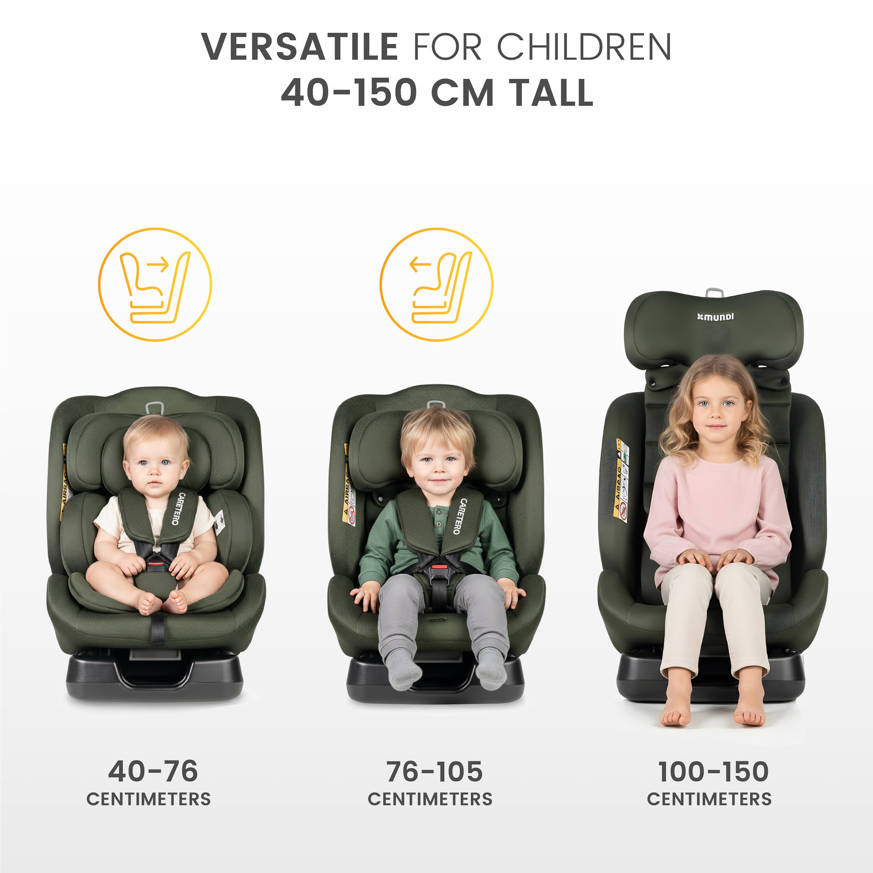 Safety with the i-Size Standard The Mundi i-Size meets the strict requirements of the i-Size standard, ensuring the highest level of protection during travel. The seat is suitable for children from 40 to 150 cm tall, ensuring their safety at every stage of growth.