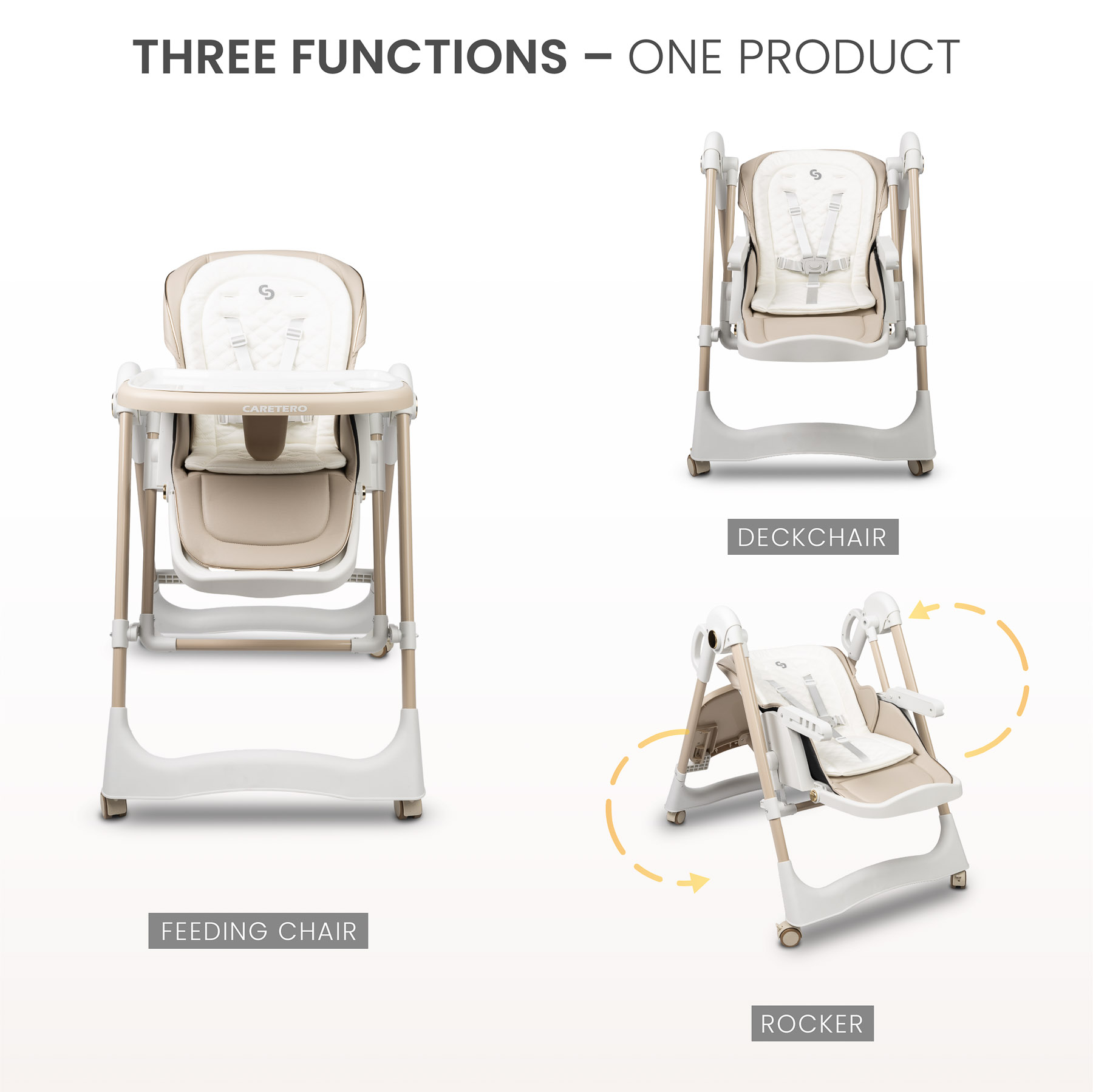 Nesto 3-in-1 – rocker, bouncer and highchair in one The multifunctional Nesto 3-in-1 highchair is designed to provide maximum comfort for both baby and parents. With three functions in one device the product “grows” with your baby and easily adapts to their needs at each stage of development.