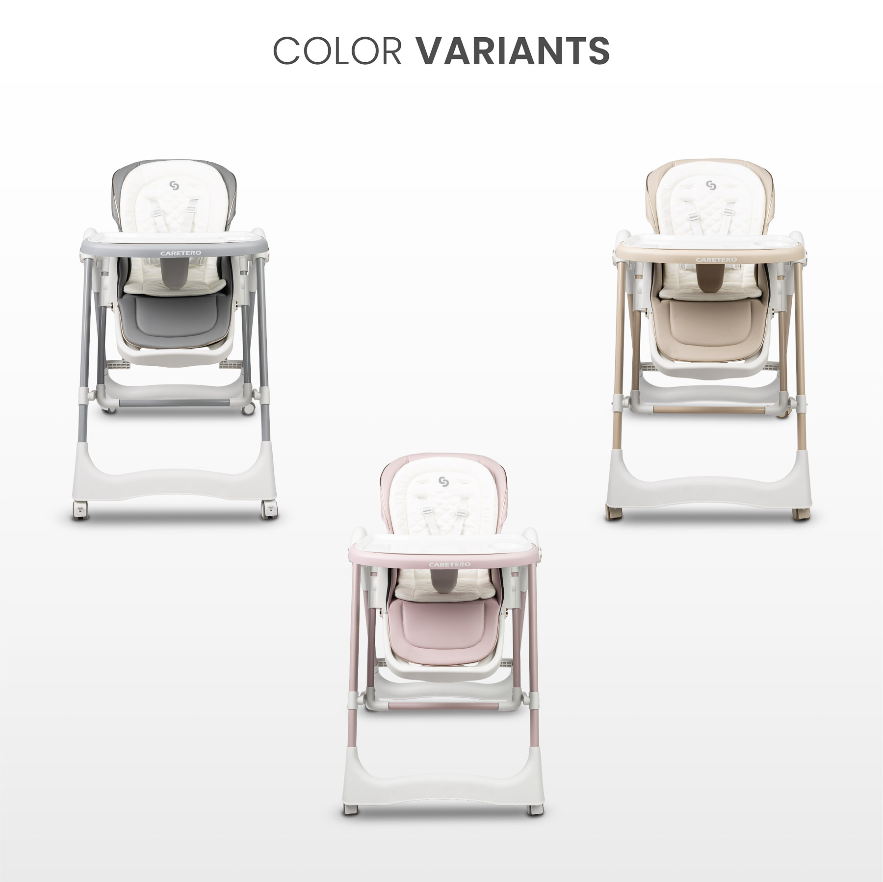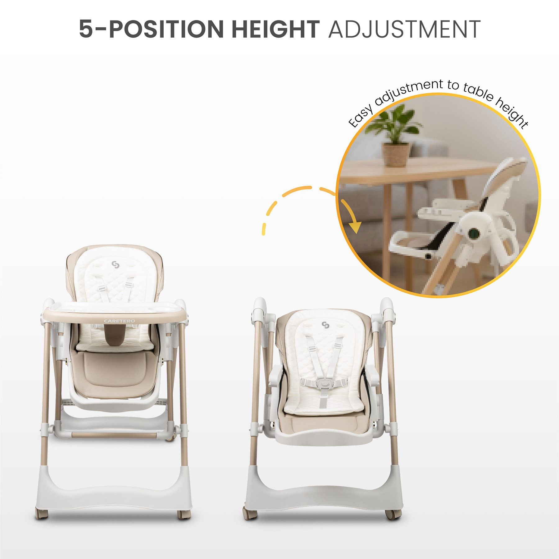 5-position height adjustment The highchair is equipped with a 5-position height adjustment, allowing for easy adjustment to any table. Additionally, the tray tilts to 3 positions relative to the seat, significantly increasing baby’s comfort during feeding.