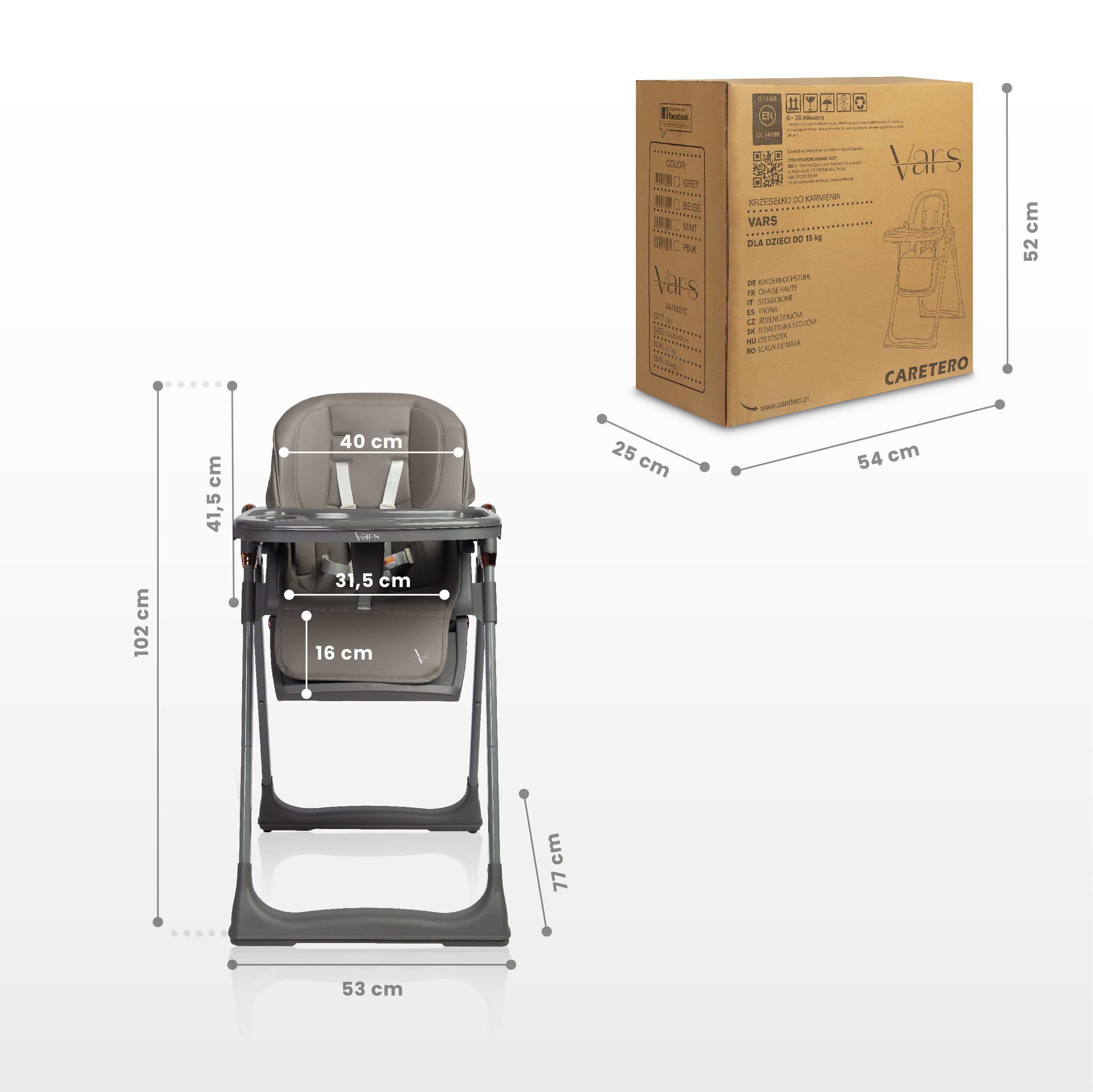 Składane krzesełko do karmienia VARS jest lekkie i komfortowe. Niewielka waga i wygoda dzięki możliwości złożenia do niewielkich rozmiarów to mocne strony produktu. Obszerne siedzisko z regulowaną tacką i pasami bezpieczeństwa sprawiają, że maluszek będzie mógł komfortowo zjeść posiłek.